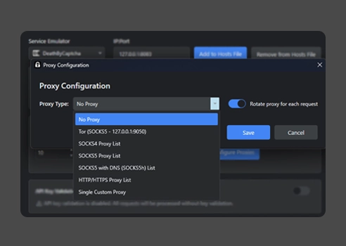 For image CAPTCHA solving, no proxies are required and CapSkip works out of the box. To solve Google reCAPTCHAs or Cloudflare Turnstile, proxies are required. CapSkip includes a built-in proxy setup where you can add proxies for smooth reCAPTCHA and Turnstile solving.