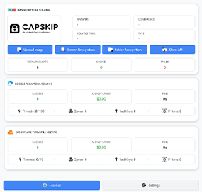 CapSkip captcha solver works with almost any application by emulating the APIs of major CAPTCHA-solving services like 2Captcha, Anti-Captcha, and DeathByCaptcha. This allows CapSkip to plug into existing tools without modification. You can also use these same emulated APIs to integrate CapSkip into your own apps, scripts, and automation workflows.